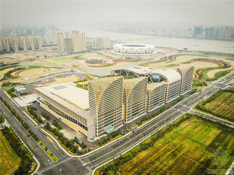 杭州國際博覽中心,位于杭州錢塘江畔,造型大氣而細(xì)膩,富于“江南意蘊”,是迄今為止中國乃至世界最大,最先進的超大型城市綜合體。杭州國際博覽中心總占地面積19.7公頃,總建筑面積85萬平方米,主體建筑由地上5層和地下2層組成,集會議、展覽、餐飲、旅游、酒店、商業(yè)、寫字樓等多元化業(yè)態(tài)為一體。內(nèi)部共有五大核心功能,分別為:會議區(qū)、展覽區(qū)、辦公區(qū)、酒店區(qū)、配套服務(wù)區(qū)以及復(fù)雜的交通系統(tǒng)。
