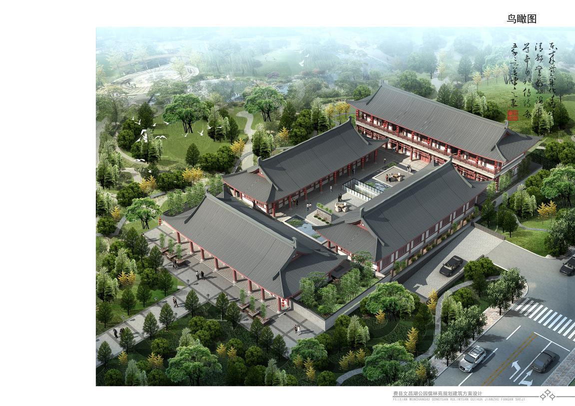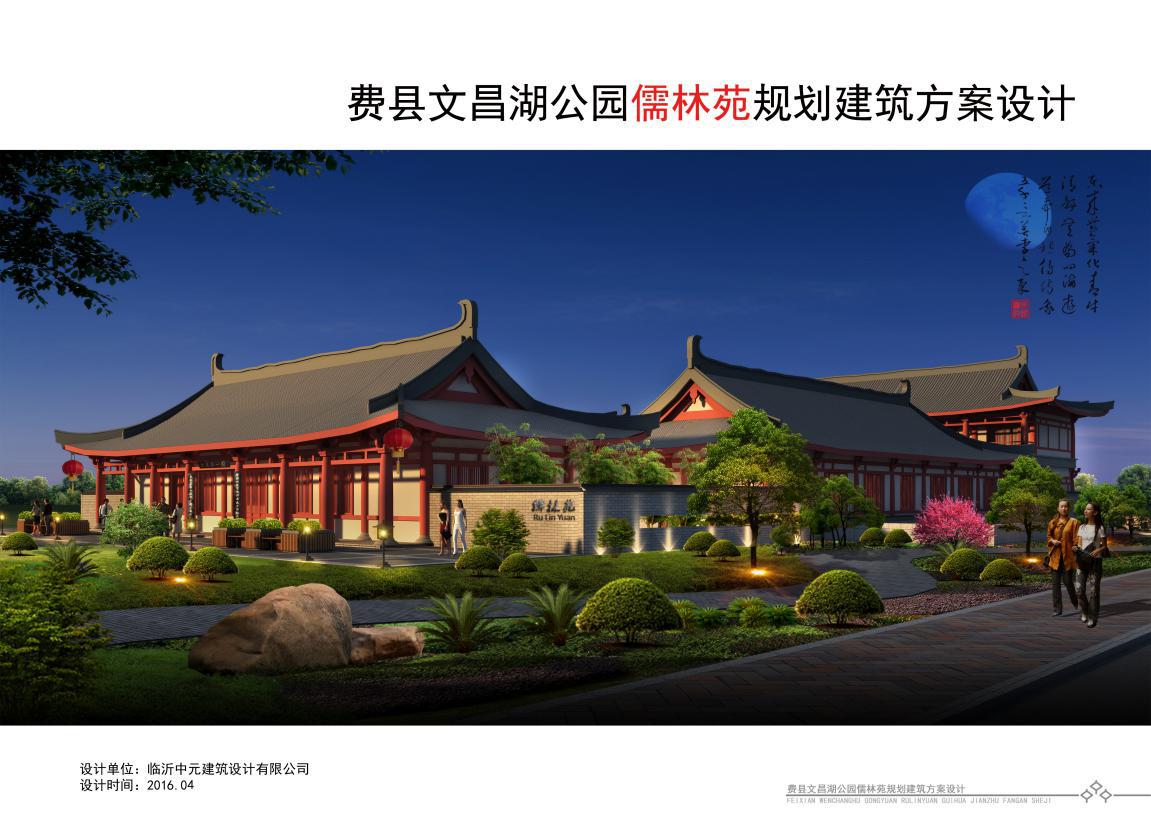 文昌湖公園位于費縣自由路上,地處河邊。而儒林苑則是在文昌湖公園里修建的一處休息用的庭院。該處庭院在設計初期選擇了多種建筑樣式,最后定格在四合院的建筑風格上。