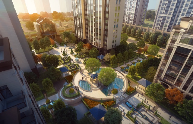 泰爾·書香頌項目在設(shè)計中,以中軸線呈現(xiàn)兩翼規(guī)整對仗,營造出縱深尺度宏大的莊嚴(yán)與氣勢,突出尊榮華貴的氛圍,利于減少戶型種類,減少施工難度,利于打造主次分明的景觀系統(tǒng)。